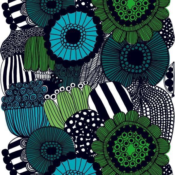 マリメッコ ファブリック PUKETTI COTTON プケッティ コットン Col.611 145cm×10cm ダークグリーン×ホワイト×ピンク