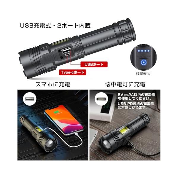 Eornmor 懐中電灯 強力【防災士監修・超高輝度・XHP160チップ】5000mAh 26650バッテリー付 軍用 最強 Type-C充電式