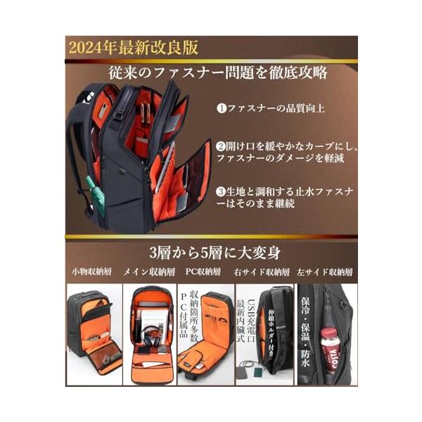 [ABIBA] 【2024年ファスナー徹底 リュック メンズ ビジネスリュック リュックサック スクエアリュック 大容量 旅行用リュック PCリ