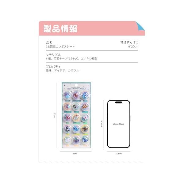 KRGNPLE ボンボンドロップシール ぷくぷくシール 2 枚 3D 浮き彫りクリスタル エポキシ樹脂 再剥離可能 PVC 材質 励ましステッカ