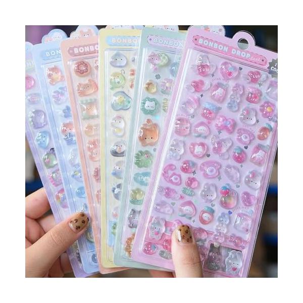・【高品質な立体仕様】エポキシ樹脂素材を使用した透明感のある立体シール。たまごっちシールのようなぷっくりとした質感で、DIY用として作品の魅力を引き立てます。