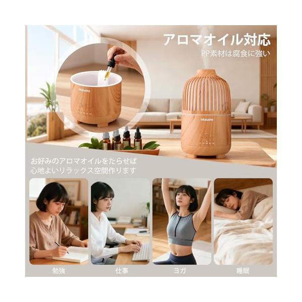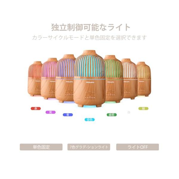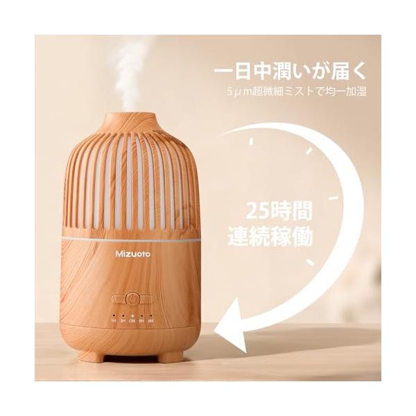 Mizuoto 加湿器 小型 卓上 アロマディフューザー 大容量 25h連続稼働 LEDライト タイマー 静音 25dB 除菌 おしゃれ 6畳