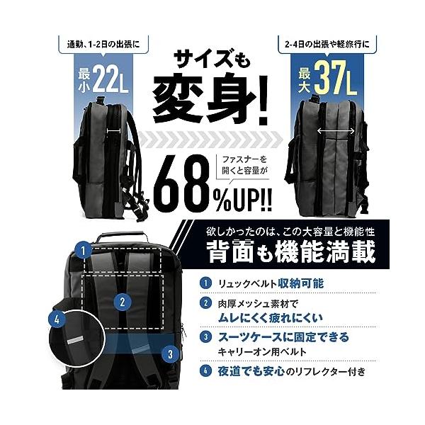 [zepirion] 2倍に拡張できる薄型 ビジネスリュック メンズ 撥水 バッグ 15.6インチ PC A4収納可 薄型 バックパック 通勤バ