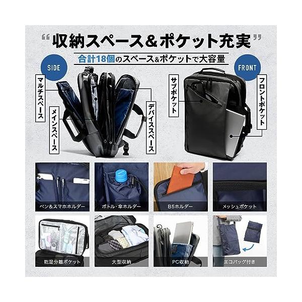 [ミセスエール] 【変身型 ビジネスバッグ】ビジネスリュック バックパック 3way 大容量 撥水 防水 拡張 盗難防止 ノートPC 通勤 出張