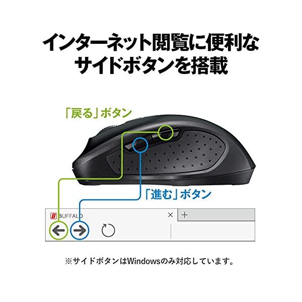 バッファロー 5ボタン Bluetooth 5.0 Blue LED マウス ブラック 戻る/進むボタン搭載 省電力 BSMBB305BK