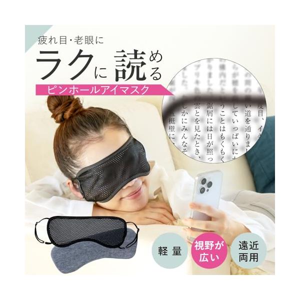 ・PC・スマホで疲れた目に。ONもOFFも目元を癒し続ける。グラフェンクッション付きラクに読めるピンホールアイマスク。