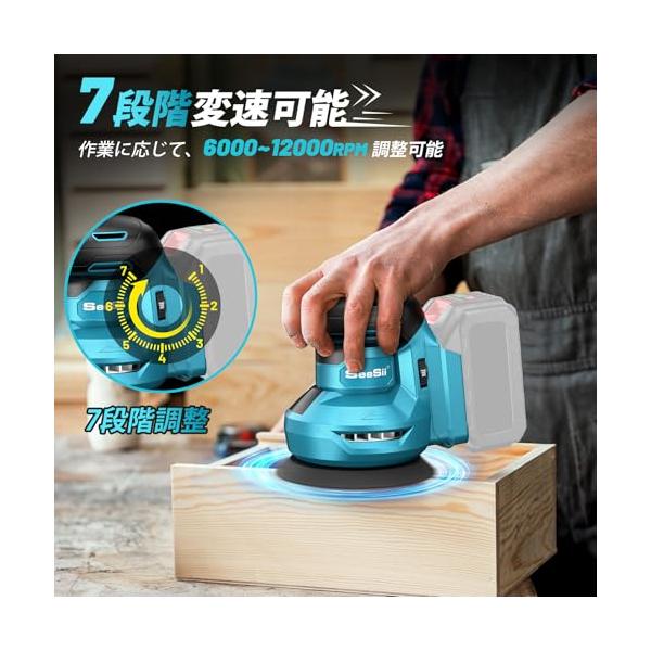 【2025最新改良】SEESII 電動サンダー ランダムサンダー コードレス 小型 研磨 ポリッシャー 7段階調速 高集塵機能 2個集塵袋付 2