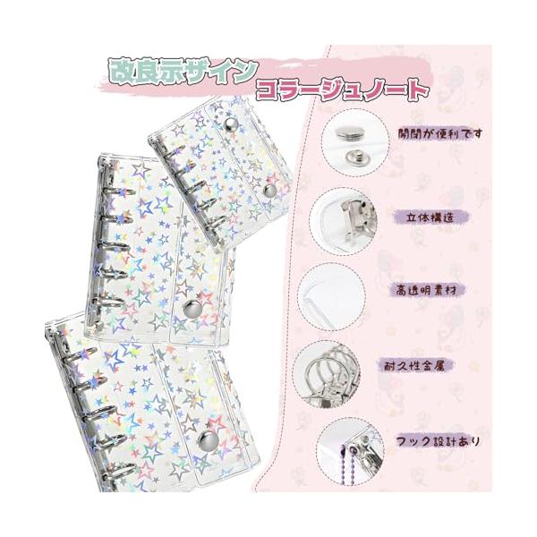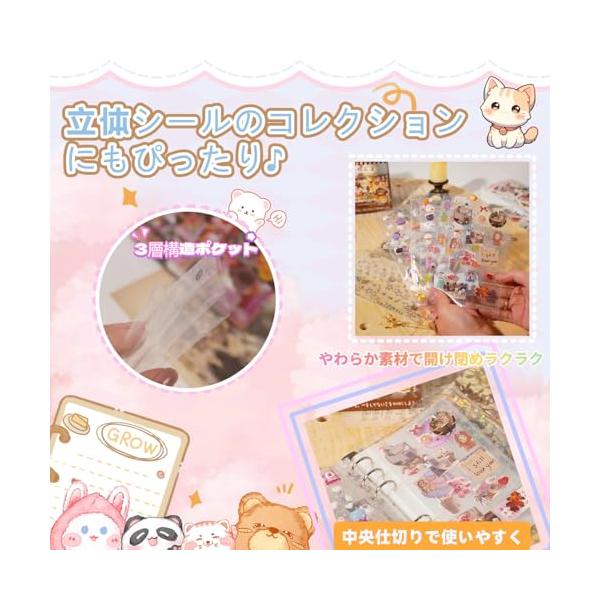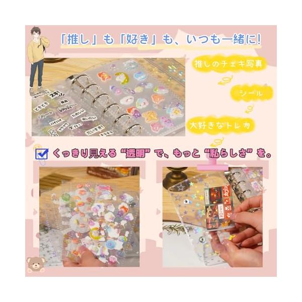 ・?? 【透明シール帳バインダーで自由自在にカスタマイズ】 このシール帳は6穴バインダー式で、リフィルを追加したり、交換するのが簡単! 透明デザインのシール帳だから、シールやカードがひと目で見えて、整理整頓も楽しくなること間違いなし♪ お気に入りのシールを使って、自分だ