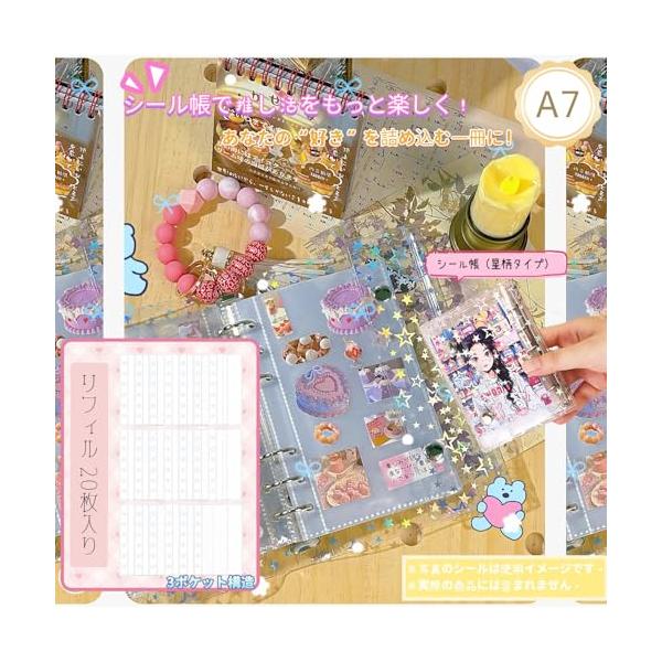 PAEUKUON 透明 シール帳 A7 サイズ ミニバインダー【20枚リフィル付き】ミニ 6穴 おしゃれ シールブック 女の子 推し活 手帳デコ