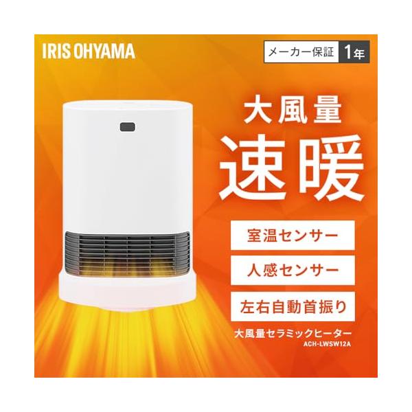 アイリスオーヤマ ヒーター 大風量 セラミックファンヒーター 首振り 人感センサー 室温センサー 節電 省エネ 1200W 転倒オフ機能 速暖