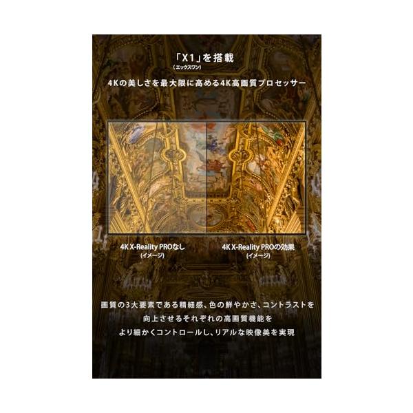 ・? 地上放送やネット動画など、あらゆるコンテンツを高精細な映像に作りかえる超解像エンジン「4K X-Reality PRO(4K エックス リアリティー プロ)」を搭載。ハイビジョン映像を4Kにアップコンバート