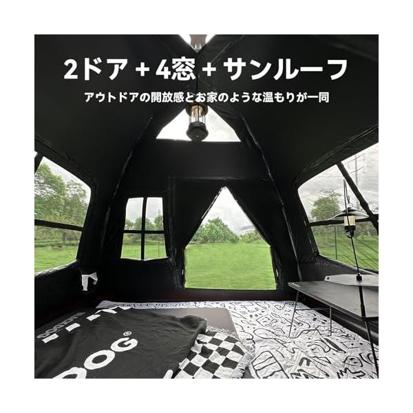 ・【広々空間&360°通気性抜群】熱がこもらないように設計されて、2つの大きなドアと4つの窓を備えており、十分な通気性を確保。特に暑い夏でも風通しが良く、内部が蒸れにくいため、快適に過ごすことができます。さらに、ドアと窓には防虫ネットが付いており、蚊やその他の虫から守られるので、夜も安心して眠ることができます。