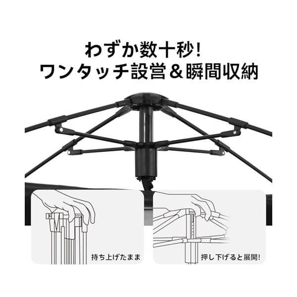 ・【最新ブラックコーティング採用!強力な遮光&UVカット】従来のUVカット素材に加え、最新の「黒膠(ブラックラバー)」コーティング技術を採用!150Dブラックオックスフォード生地との二重構造により、紫外線(UPF50+)を99%以上カットし、強い日差しを完全ブロック。内部の温度上昇を抑え、涼しく快適な環境を提供します。ビーチやキャンプでの日焼け対策にも最適!