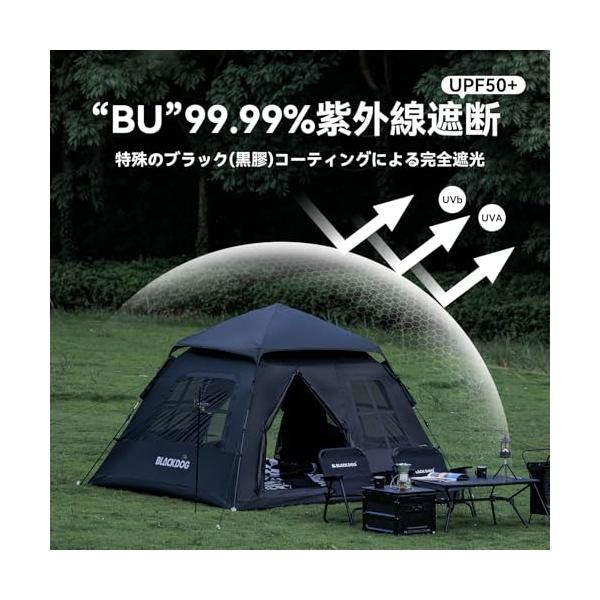 【公式】BLACKDOG テント ワンタッチ 幽居 3〜4人用 BU素材 アウトドアキャンプ 設営簡単 uvカット 自立式 2重層 耐水圧 30
