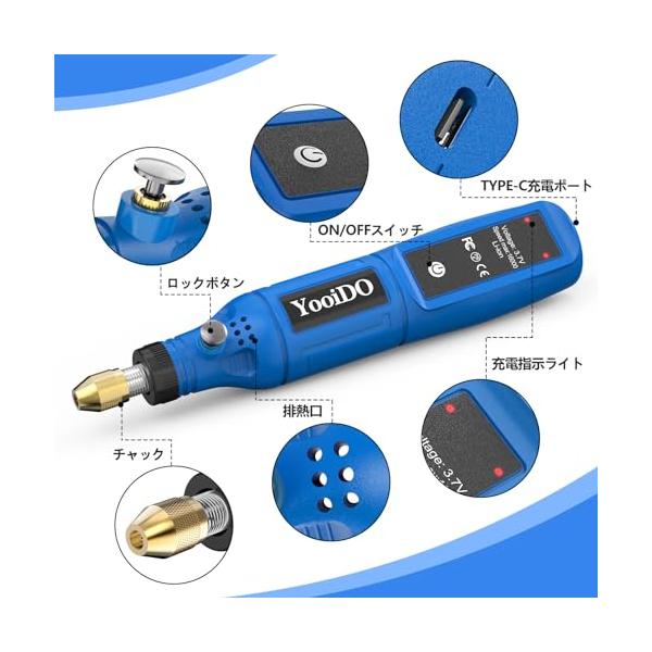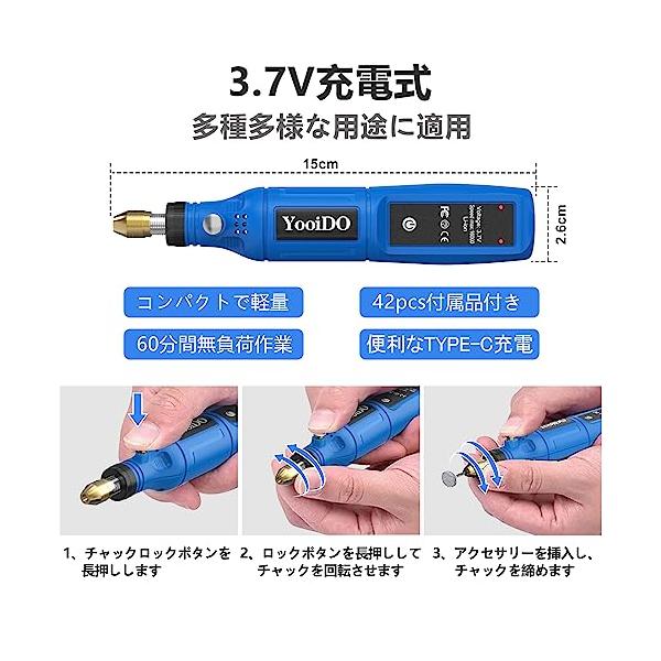 ミニルーター リューター コンパクトルーター 42PCSセットYooiDO ルーター工具16000RPM高速回転 USB充電式 コードレス 研磨