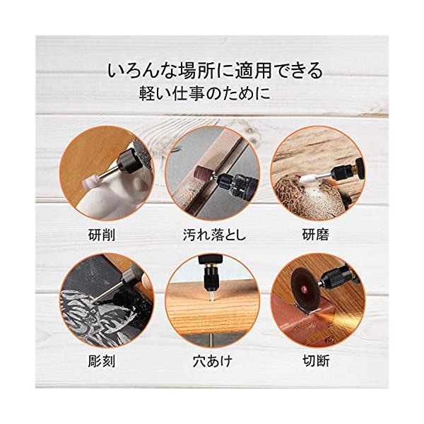 ・【16000RPM高速回転&低騒音】本りゅーたーは16 000回転/分まで回転数を作業内容や素材に合わせて達せられる。最適な回転数で彫刻/穴あけ/研磨/切断/切削/汚れ落としなどの様々な作業を楽々にします。またペンみたいなサイズで、握りやすくて快適さが感じられます。自宅でリューターを使用する場合には、騒音としては少ないですし、自宅で静音性に優れたものとして安心的に使用することができます。