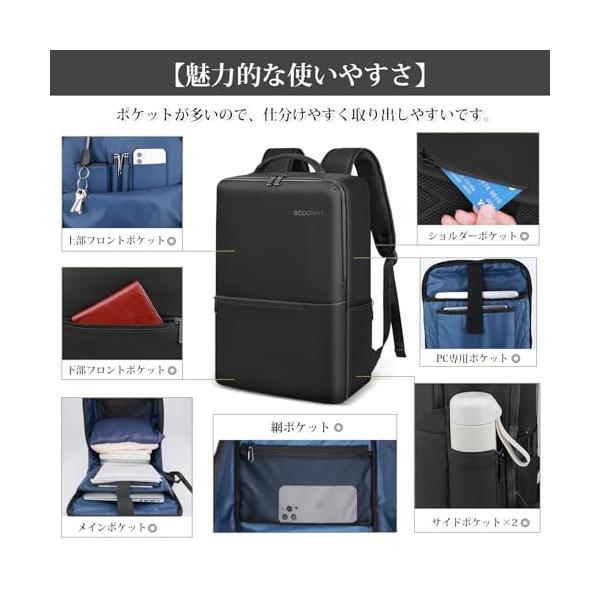 [ecoofee] ビジネスリュック メンズ 防水 15.6インチ PCリュック 止水ファスナー 軽量 リックサックメンズ 大容量 A4収納可