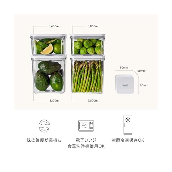 ・商品容量: 正方形容器 3.1L x 1 / 1.4L x 1、長方形容器 2.0L x 1 / 1.0L x 1