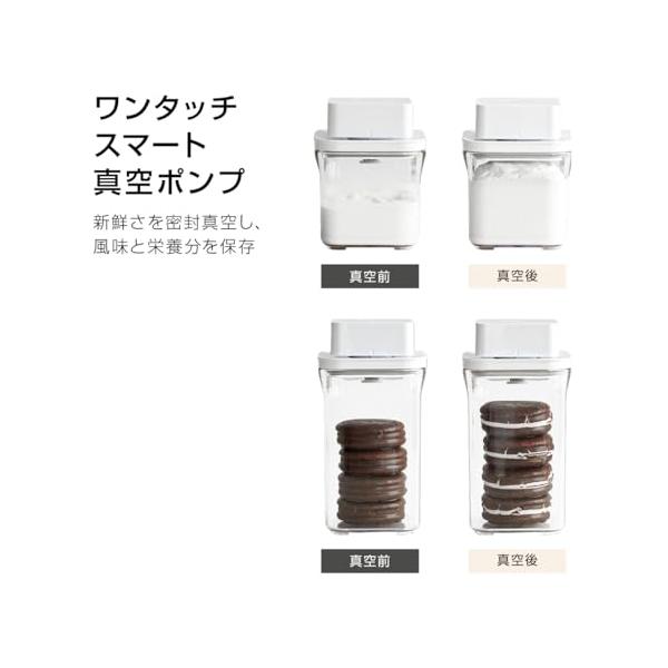 ・商品サイズ: (幅×奥行×高さ)真空容器 ショート 156x105x104mm、165x165x102mm / 真空容器 ミディアム 156x105x170mm 165x165x181mm / 真空ポンプ 80×80×50mm