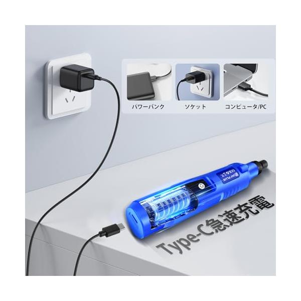 ・?【TYPE-C充電式&コードレス!】 最新のType-C充電ポートを採用し、わずか1時間でフル充電可能。50cmの長い充電ケーブルは電源から離れた作業でもストレスフリー。たった150gの超軽量設
