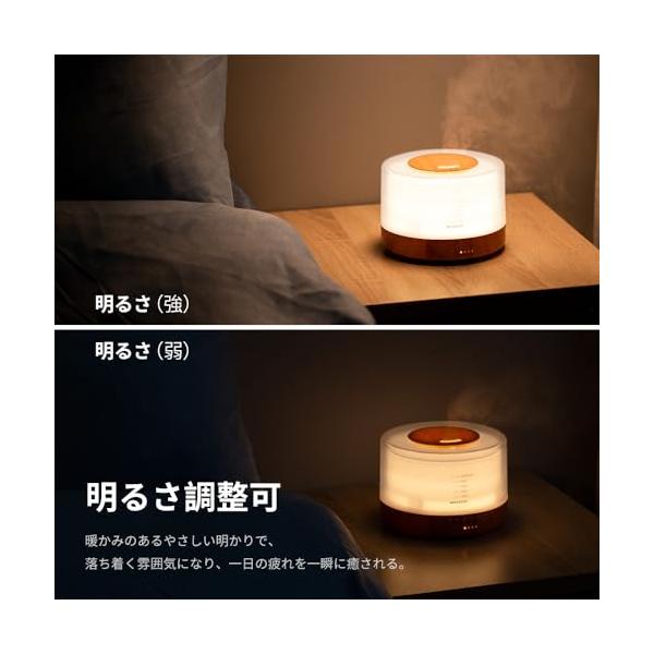 ・ヘッドサイドランプ・音楽 :LEDライトも付き、ミストを出さずに間接照明としても使用できます。目にやさしいのライトで、お部屋の癒しく温かい雰囲気を楽しむことができます。 また、癒しの音楽も内蔵されており、自然の中にいるような感覚にとらわれ、心地よく睡眠を助けてくれます