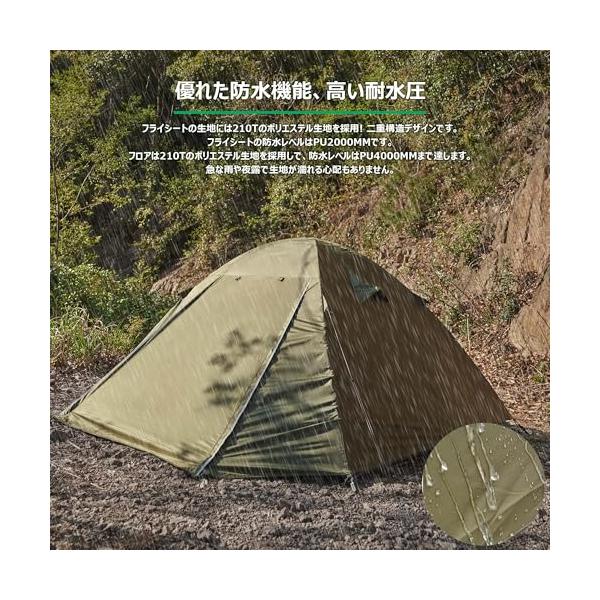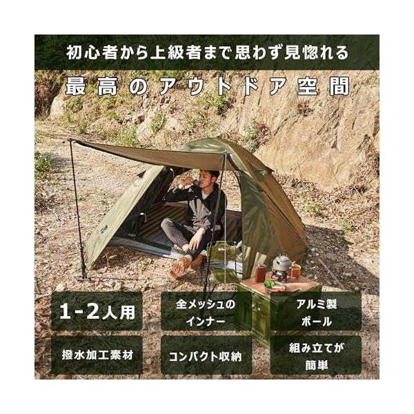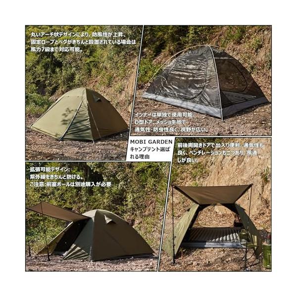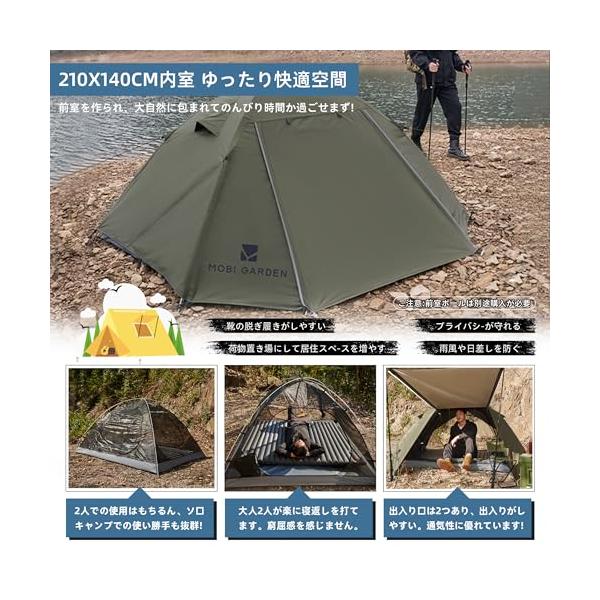 MOBI GARDEN テント 1-2人用 キャンプテント 自立式 前室あり ドームテント 耐水圧3000mm コンパクト軽量 二重層構造 通気