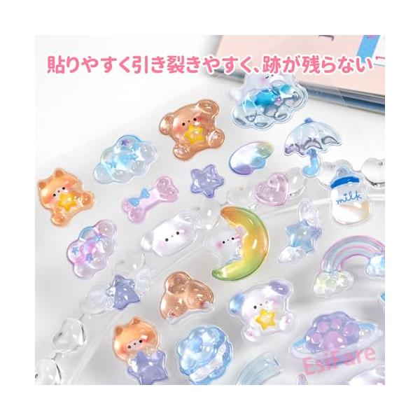 ・【デザイン】この立体シールは高品質のエポキシ樹脂素材で作られており、独特の透明感と立体感を備えた透明な水滴効果を表現しています。シールをより鮮やかでかわいく見せるだけでなく、DIY作品に面白さと楽しさを加えます。