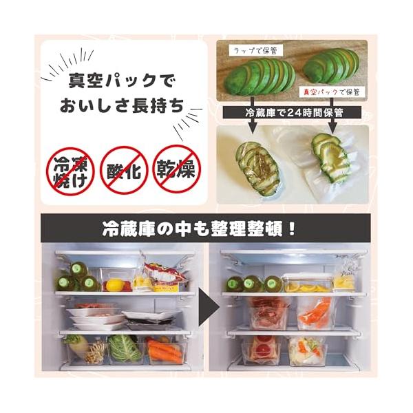 ・??【70kPaの強力な吸引力の真空パック機】一般的な真空パックをする真空機には珍しい、USB-Type C充電式でコードレスにも関わらず、しっかりとした真空パック状態を作り出せる真空吸引力(70kpa)を搭載!生肉や魚などの食品の小分けをして冷蔵・冷凍での保管はもちろん、低温調理などにもおすすめです。