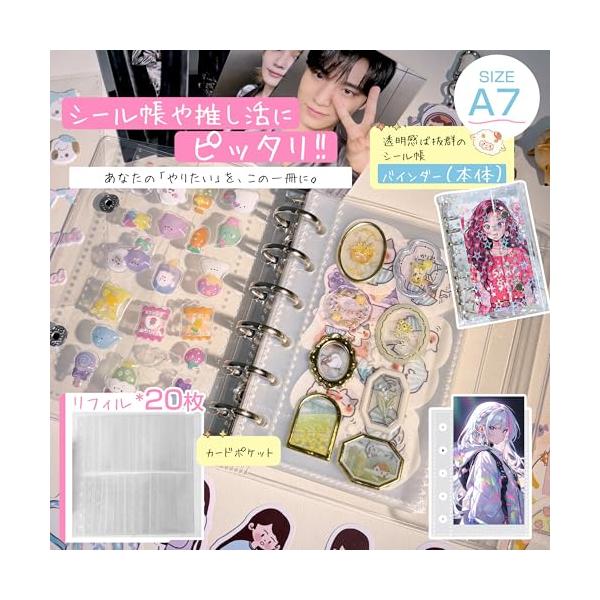 GOKEI シール帳 プラバン 透明 A7 サイズ ミニ バインダー 【リフィル×20枚】 クリア カードポケット 手帳 推し活 女の子 コラー