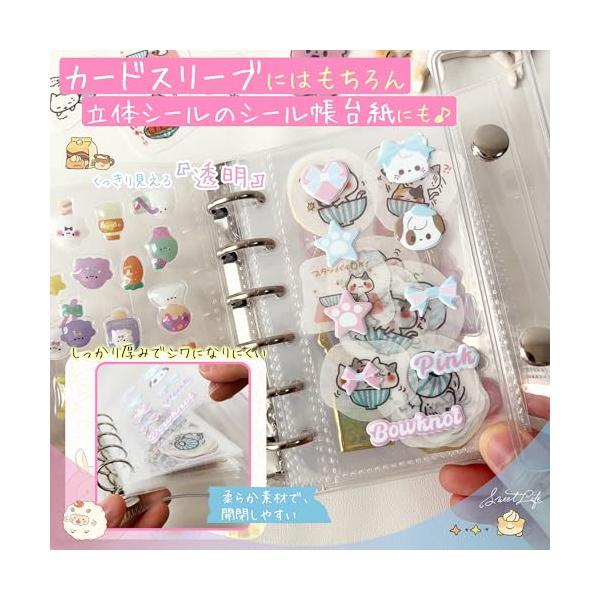 ・【しっかり厚み・透明感抜群・柔らか素材】 カードスリーブにはもちろん、立体シールのシール帳台紙にも!しっかり厚さで頑丈に仕上げました。柔らかい素材で開閉しやすい、シワになりにくく、快適にページをめくれます。透明感のあるPVC素材を採用し、シンプルな透明ボディが中身を引き立てます。
