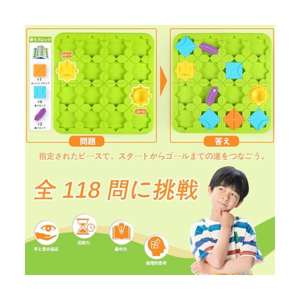 Yangtomo ロジカルルートパズル 知育玩具 プログラミング おもちゃ モンテッソーリ 【5段階の難易度 全118問に挑戦】 脳トレ 論理的