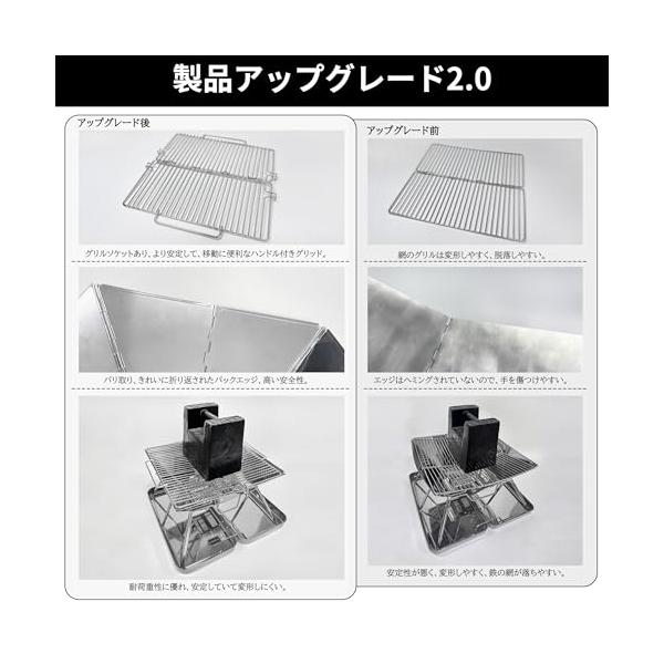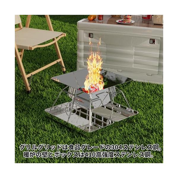 ・【製品のメリット】頑丈な構造、耐熱性、滑り止め、お手入れが簡単、バーベキュー、キャンプファイヤー、暖炉の3つの用途に使用できます。組み立てと展開が簡単。 ステンレス製の収納ボックスは、広げると炭の灰入れや遮熱板として使用できます