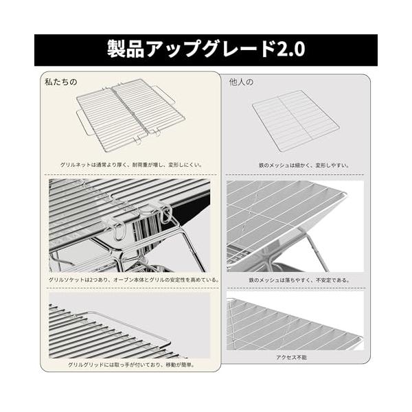 ・【仕様】重量:3.1 kg、使用サイズ:約38.5 x 39.5 x 21.5 cm、折りたたみ収納寸法(約):38.5×19.8×6 cm、304ステンレス鋼 焼き網:30×30 cm