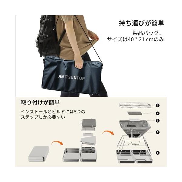 AMITSUNTOP 焚き火台 バーベキュー コンロ 屋外での焚き火 コンパクトな折りたたみ収納ステンレス鋼 収納袋付き グリルデザインの改良に
