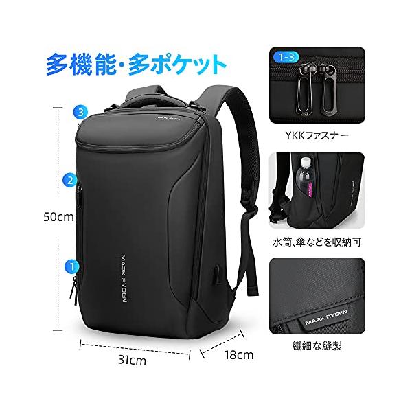 [マークライデン] バックパック 防水ビジネスリュック メンズ用 30L大容量 盗難防止ラップトップバッグ17インチパソコン対応 黒