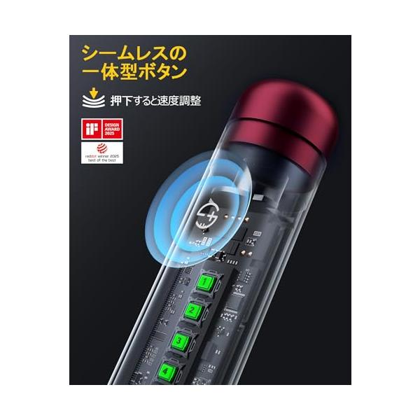 ・スタイリッシュ&実用的:シームレスな一体型速度調整ボタンは、防水・防塵仕様で掃除が簡単。どんな作業環境にも適応可能。革新的なLED速度表示灯は、リアルタイムで設定を表
