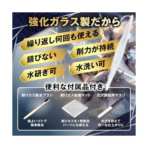 ・?【さらに満足していただくための付属品】より快適に使用していただくために【洗浄用ブラシ】【削りカス吸着マット】【光沢調整用ヤスリ】を付属しました。このセットで全ての作業を完結できます。