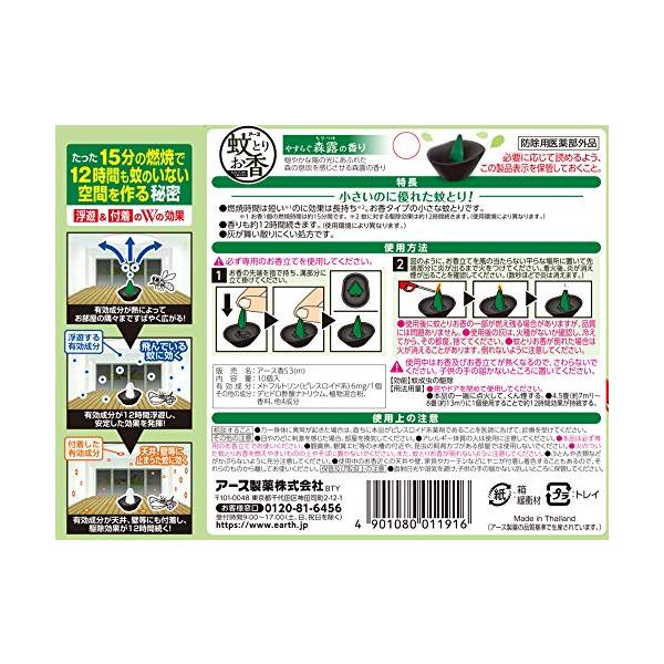 アース渦巻香 【防除用医薬部外品】アース蚊とりお香 蚊取り線香 森露の香り [お香立て1個+お香10個]