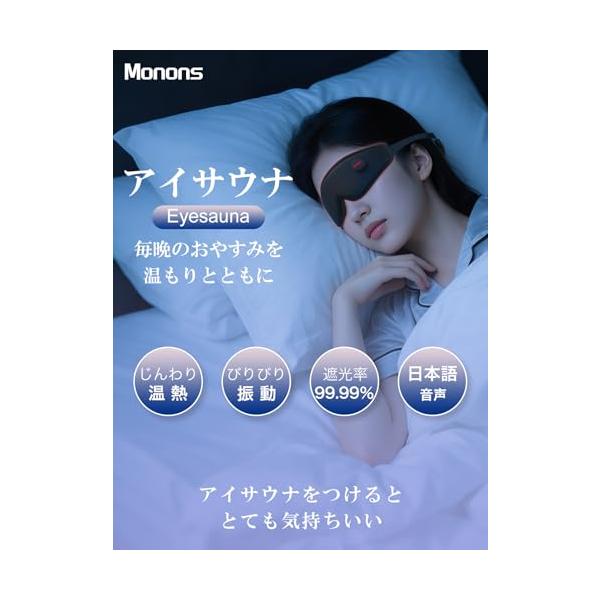 【極上アイサウナ・温めと振動でリラックス】モノンズ(Monons) ホットアイマスク 充電式 アイマスク 睡眠用 3D立体型 日本語音声 3段階