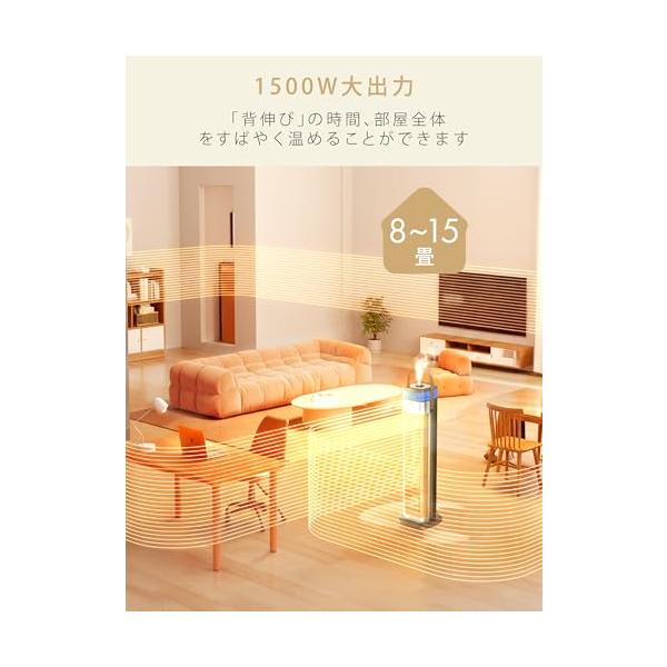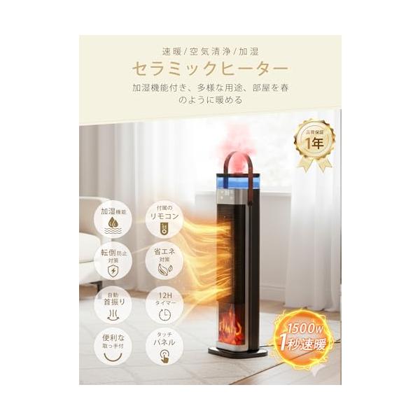 ・【2025年3in1新型のヒーター&暖房・加湿・空気清浄】本製品は暖房、加湿、空気清浄の3つの機能を搭載しています。1500W高出力暖房、1秒で暖房開始!長時間送風による室内の乾燥を防ぐため、水タンクに適量の水を注入するだけで加湿器のようにミストを放出。温度を上げながら室内の湿度を調節します。さらに空気清浄機能を搭載し、暖房によるホコリの舞い上がり効果的に抑制。ダニアレルギー対策に特に効果的です。1台で多機能!省スペースで使い勝手も抜群。今冬には最適な選択だ!