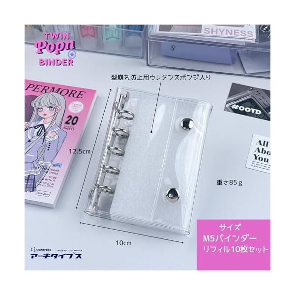 Archtypes シール帳 透明 シール バインダー 女の子 はがせる m5 シール手帳 マイクロ5 クリア (TWIN Popn BINDE