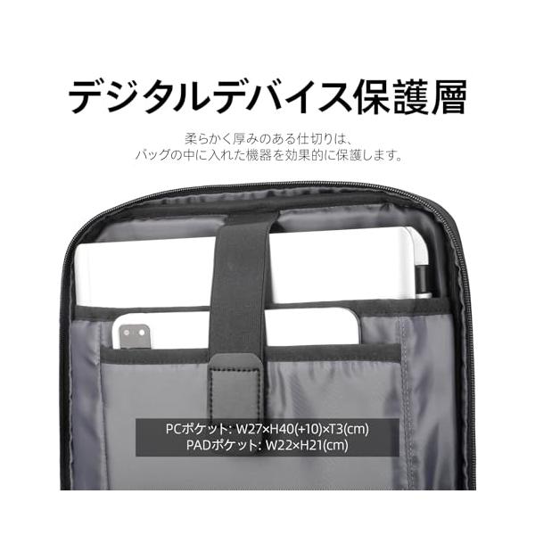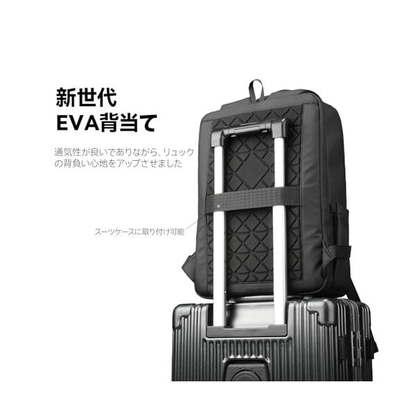 ・【快適な工学設計】長年のメンズリュック設計で培われたノウハウを活かし、快適な背負い心地を追求。人間工学に基づいた荷重分散設計で、体感重量を軽減。背面には、通気性とクッション性に優れた特殊EVAパッドを採用、テストの結果、多くの