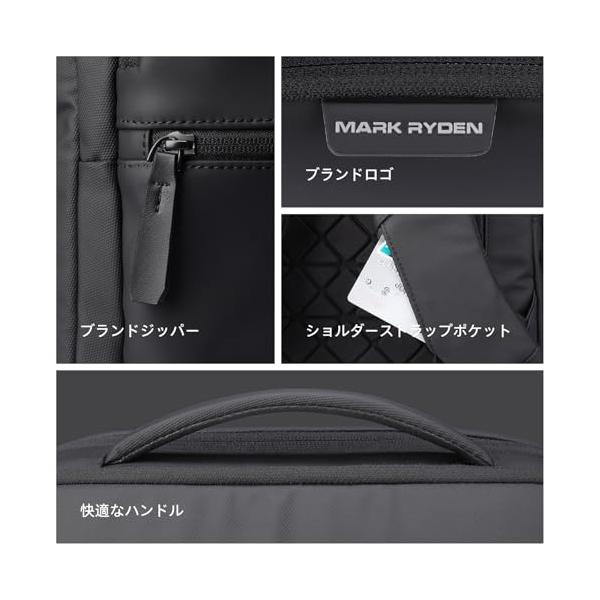 MARK RYDEN ビジネスリュック 通勤用 リュック メンズ PU 大容量 撥水加工 15.6インチ PC USB充電ポート付き 多機能