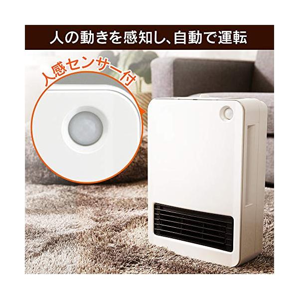 ・人の動きを感知して自動でON/OFFする、人感センサー付セラミックファンヒーターです。