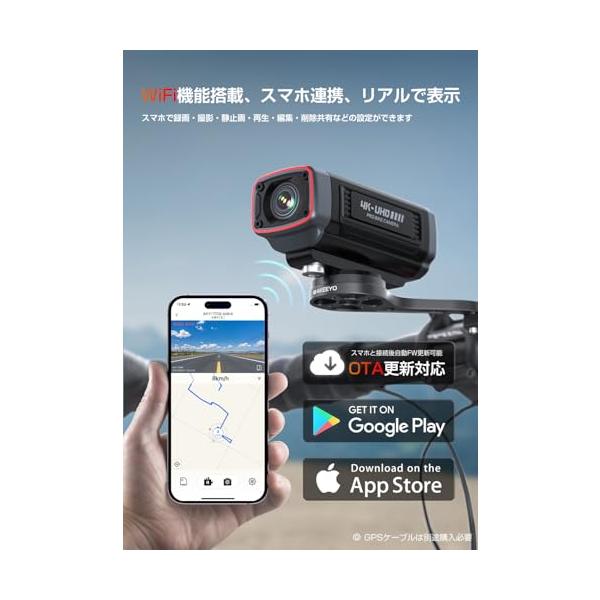 AKEEYO 自転車ドライブレコーダー 500万画素 4K UHD 28fps/2K 55fps自転車ドラレコ 煽り運転防止ロードバイク スマホ