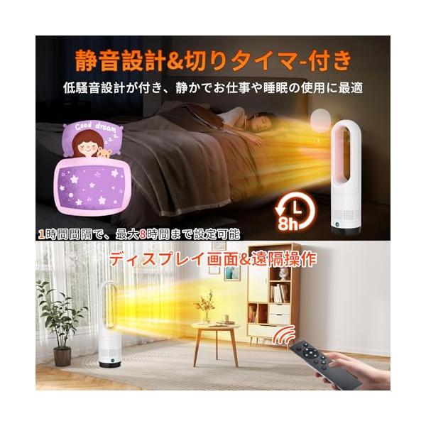 ・【加熱しながら髪の毛を99%除去】セラミックヒーターは100°自動首振り機能で、より広い範囲の温風供給を実現でき、8-20畳の部屋に適しています。また、従来の セラミックヒーター は 電気ヒーター 内に髪の毛や小さな異物が入りやすく、加熱すると異臭が発生します。しかし、2025年の進化版 電気ストーブ に