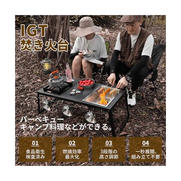 折り畳みコンロ バーベキュー コンロ igt コンロBBQグリル 焚き火台 igtテーブル用 三段階の高さ調節 ステンレス棒 2本 瞬時に展開・