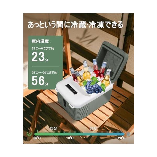 ・【-20℃急速冷凍機能】車載用冷蔵庫は業界最新の可変速DCコンプレッサーを搭載され、-20℃から20℃まで調整可能で、温度設定を1℃単位で行うことができます。わずか23分で0℃に達し、56分で-20℃まで冷凍することが可能です。高密度ウレタン断熱材を採用し、3層保温で密閉性と保温性を高めて冷気が逃げてしまうのを防ぎます。