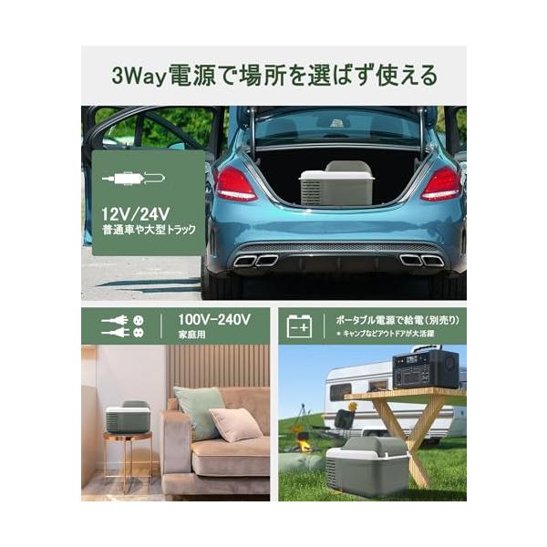 Alpicool 車載冷蔵庫 11L ポータブル冷蔵庫 小型 -20℃〜20℃ 急速冷凍 3WAY電源対応 DC12V/24V AC100V 車