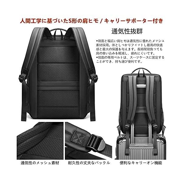 ・【通気性抜群・キャリーオン機能】リュックサックの背負う裏面と幅広いS形肩ヒモは通気性に優れたメッシュ素材を採用。体としっかりフィットし、背中に最高の快適感と荷物が重くなっても疲れにくいです!バックパック背面の専用ベルトは、